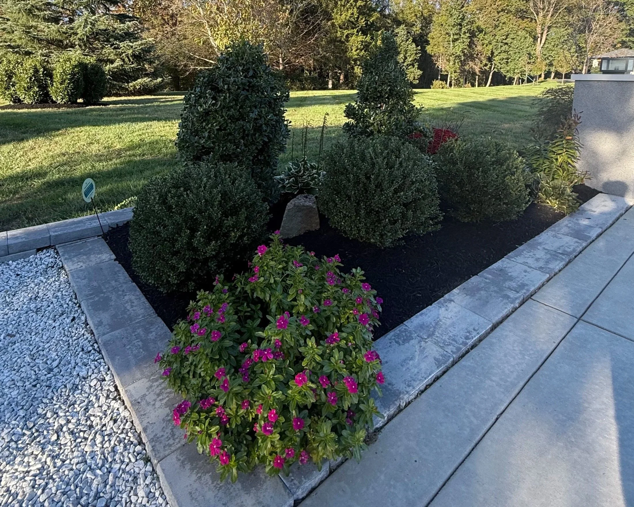 We smooth the surface, check the coverage, and clean up the surrounding space to make sure everything looks even. We take a final look over the area before wrapping up, making sure the beds are clean, defined, and properly finished.